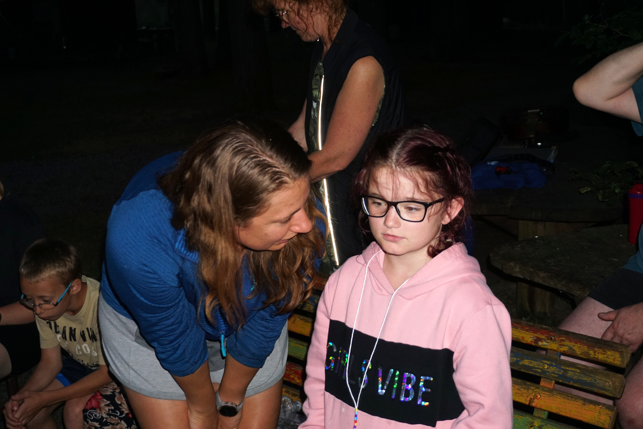 Po celodenním pochodu jsme ale nenašli vůbec nic užitečného. A ještě si Cristina, Sofia i Gina s Tonikou poranili nohy. Uspořádali jsme velkou záchrannou misi, zhotovili nosítka a odnesli je. Alespoň jsme při tom zapomněli na hádky a pěkně si pomáhali. Vrátili jsme se tedy bez úspěchu, ale zvláštní bylo, že nás vítala dobře naladěná Alma. Že by si té svíčky nevšimla? K našemu velkému překvapení jsme pak ovšem zjistili, že svíčka září úplně jako dřív. Tomu jsme moc nerozuměli.